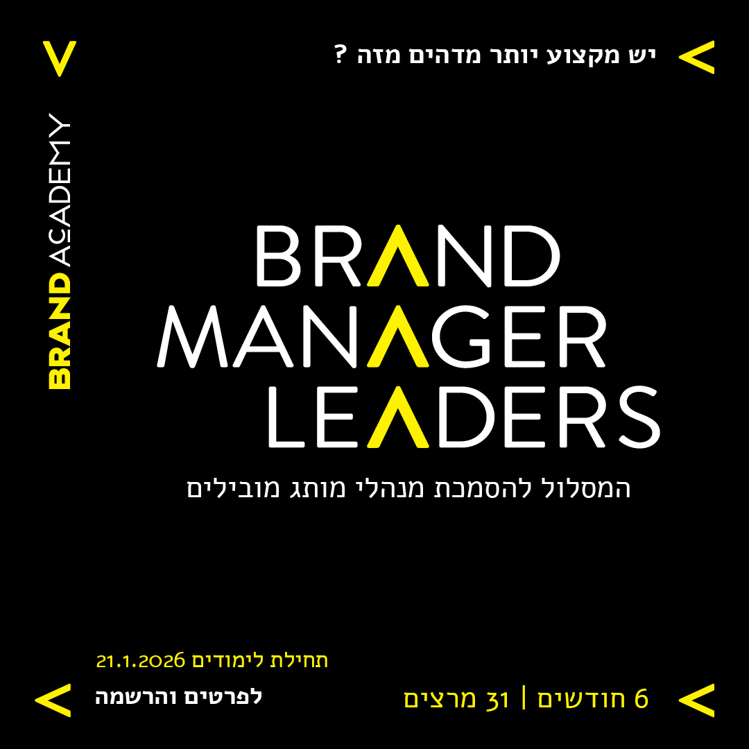 המסלול להכשרת והסמכת מנהלי מותג מוביליםכשאתם נרשמים למסלול להכשרת מנהלי/ות מותג של Brand Academy, אתם משקיעים בקריירה שמציעה לכם הזדמנויות בלתי מוגבלות לצמיחה והצלחה. במסלול... -